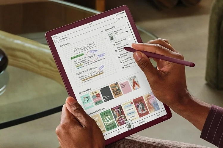 The Amazon Kindle Scribe Colorsoft is equipped with an 11-inch display, which is a bump up in size from the 10.2-inch screen from the previous generation. It has 300 ppi pixel density when displaying in grayscale, although that goes down to 150 ppi in color mode, so you do lose considerable sharpness if you want to use it in full color. No word on what kind of E-Ink panel was used for this, but Amazon says it’s a custom oxide-based display with a paper-like color that’s easy on the eyes. The display has a textured surface, too, so it should feel a lot better to write on compared to your standard iPads and Android tablets, all while being ultra-responsive, so you can see every stroke you write immediately on screen. There’s also an auto-adjusting front light so the screen should be perfectly legible, regardless of whatever ambient light is present in the vicinity.
