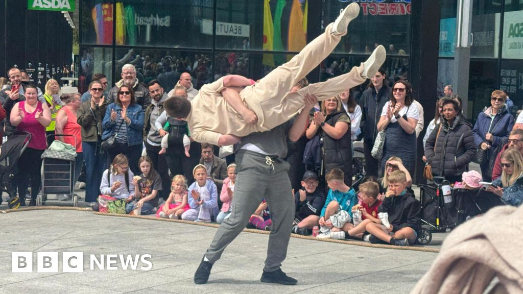 Acrobats and dancers from across the country and around the world performed outdoors for spectators in the town centre.