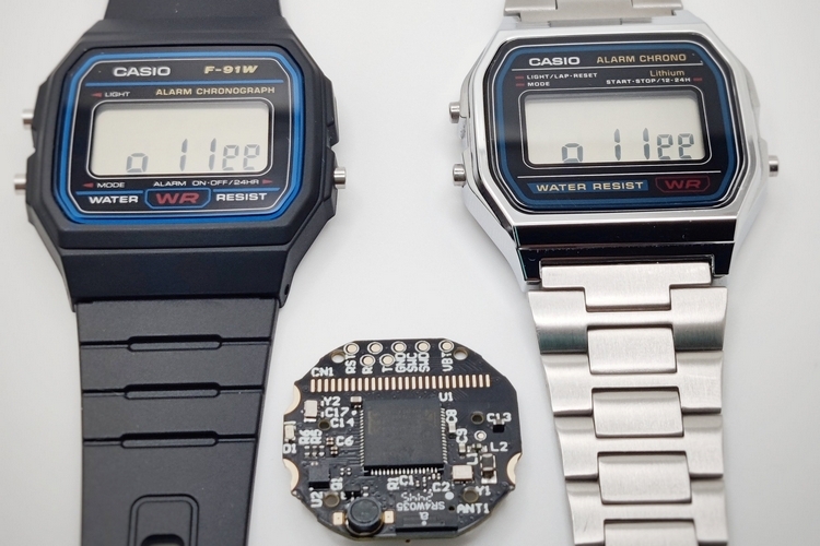 The Olle Watch One DIY Kit consists of a mainboard that you can use to replace the existing one in your watch. It works with a number of models, namely F-91W, A158W, F-84W, A159W, A171W, and W-59, so you have the option to use it with both the casual resin watches or the dressier stainless steel models. Do note, the included NFC chip doesn’t seem to work with the A158W steel variants (you can’t tap to pair, we guess), but all other features are available for all the compatible models.