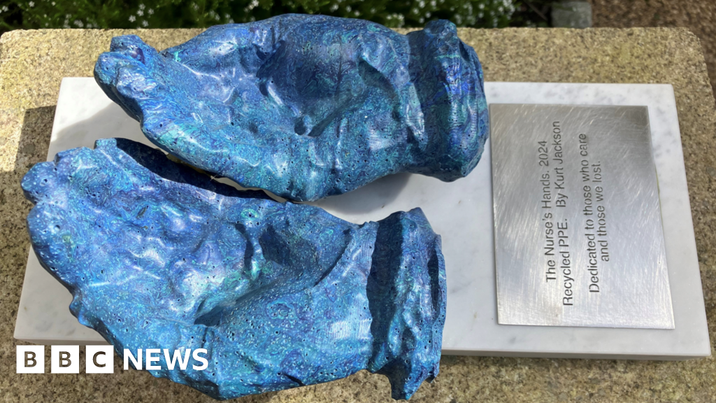Jackson used PPE that had been collected and recycled on site, after learning about the hospital’s efforts to reuse materials. Dr Joe Parker, who works in intensive care, said using PPE to make the sculpture would “be heard and felt by everyone” at the hospital.